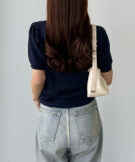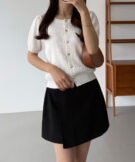 柔らかいニット素材で、トップスとしても羽織りとしても活躍する一枚です。