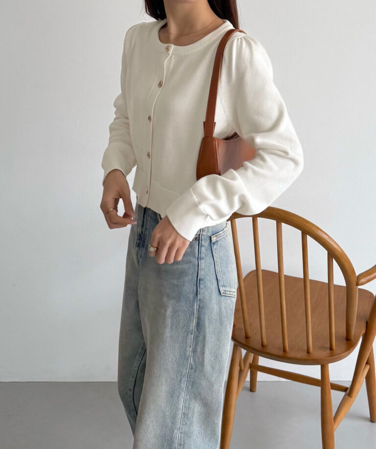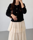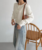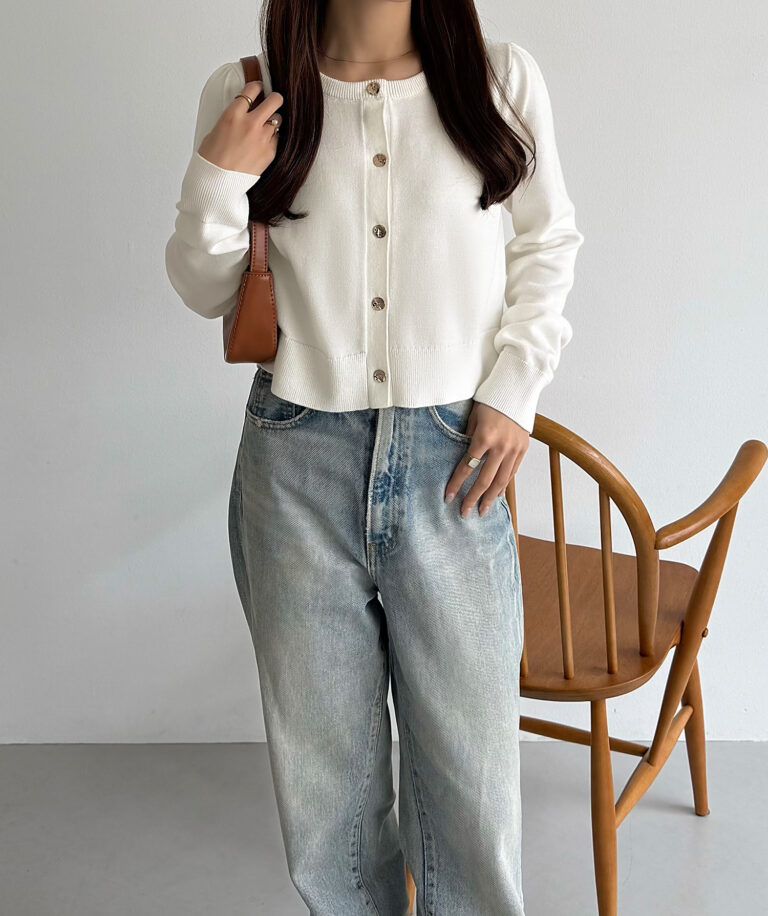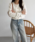 上品×カジュアルに着こなす金ボタンカーディガン。