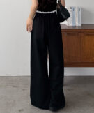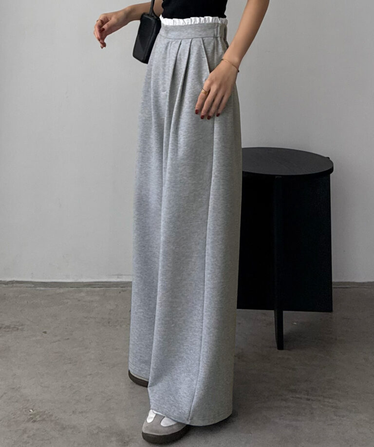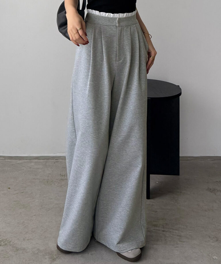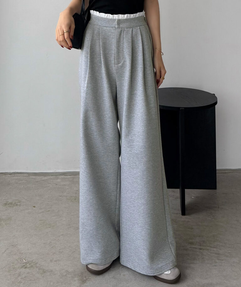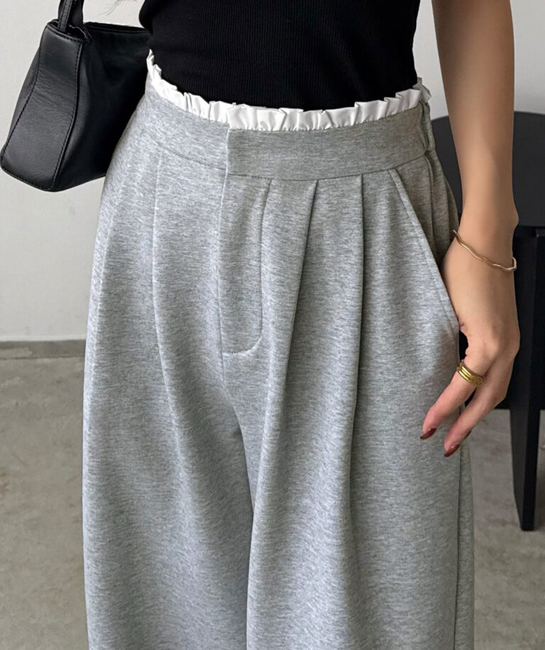 ウエストのフリルが可愛らしいスウェットパンツ。
