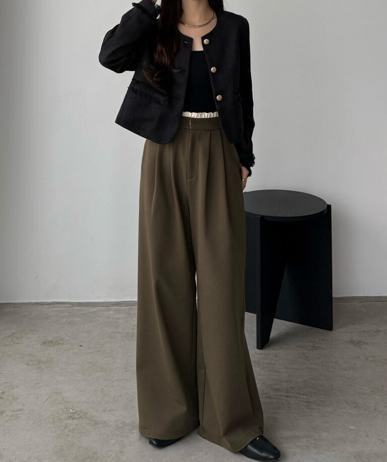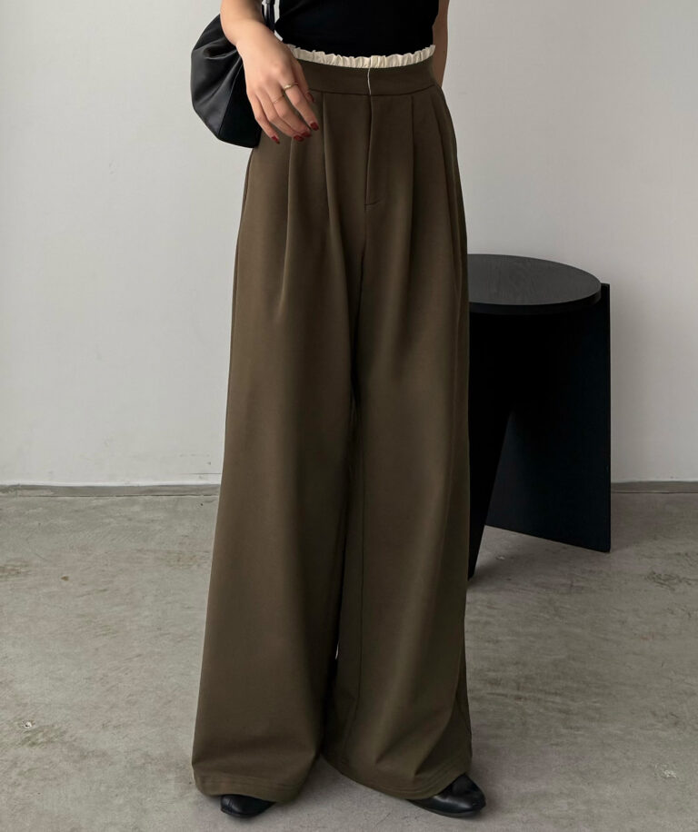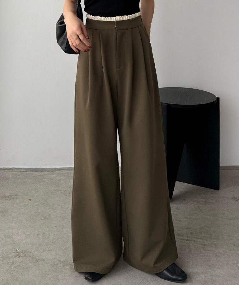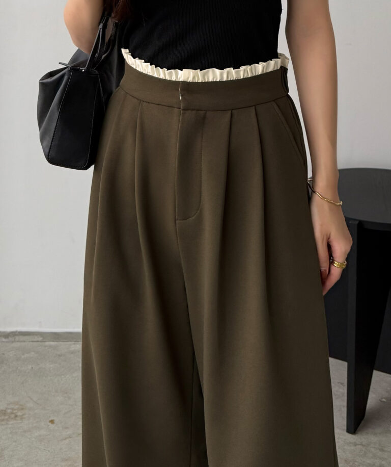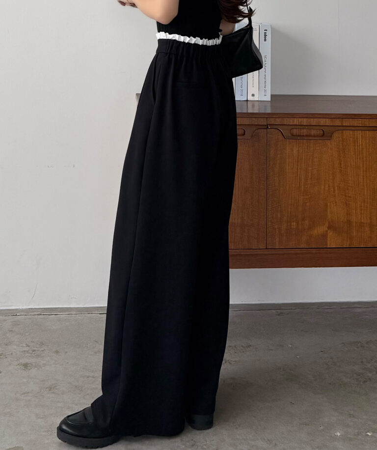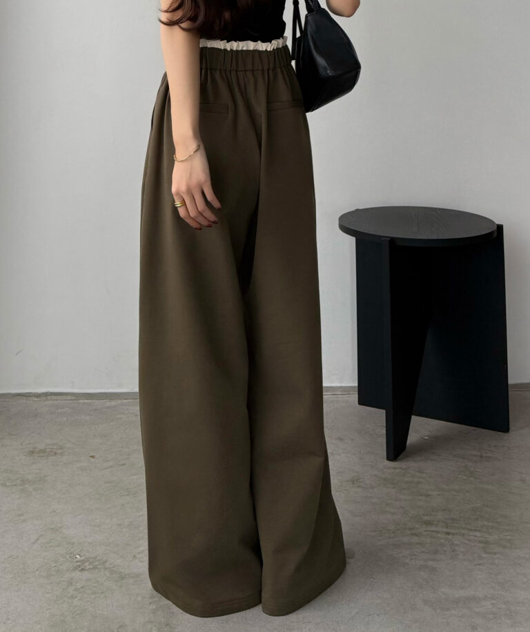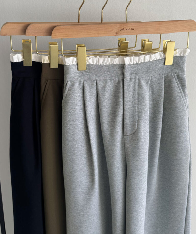 ウエストにはタックを寄せることで腰回りをすっきりと見せることができます。