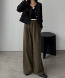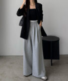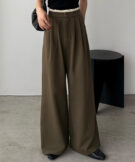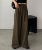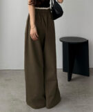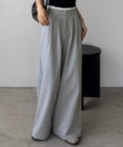 ゆるやかなパンツシルエットながら、