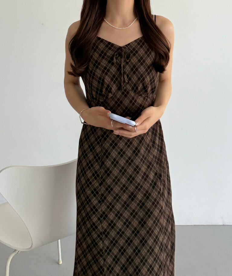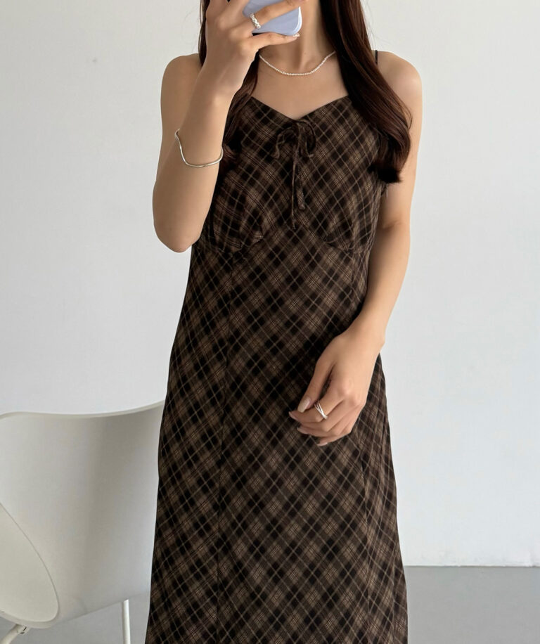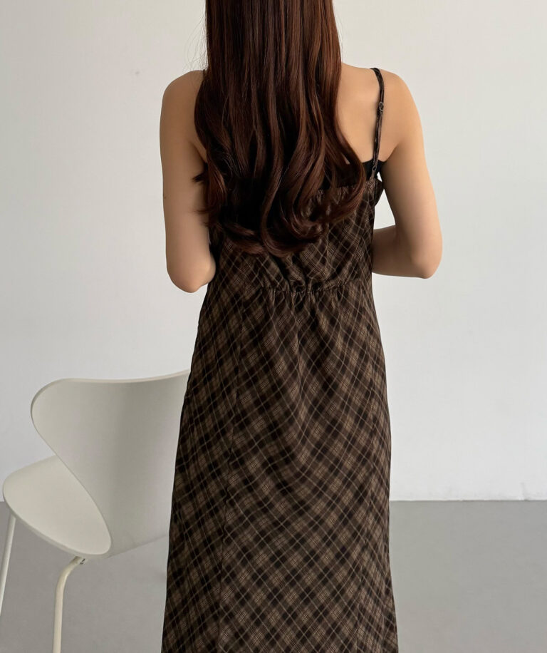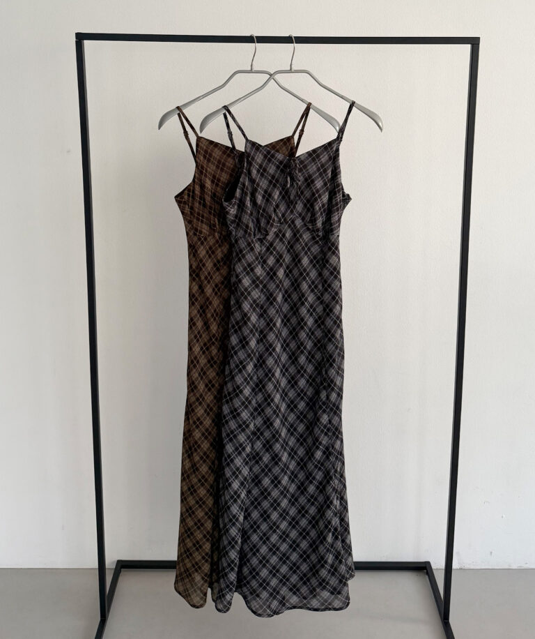 軽やかな質感のチェック生地を使用したキャミワンピース。