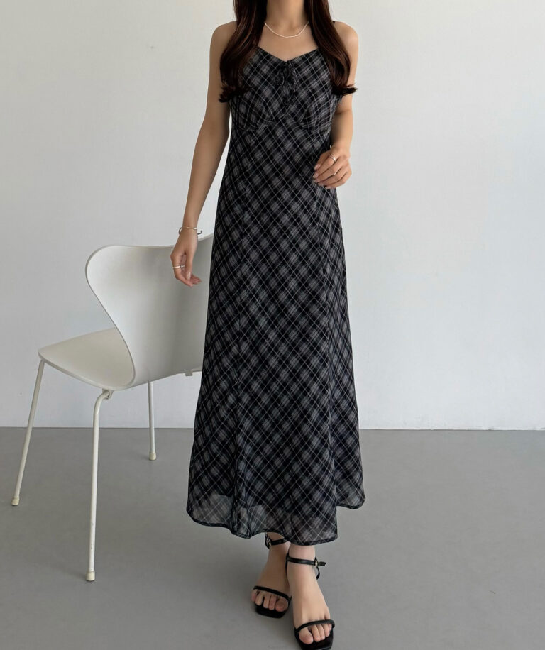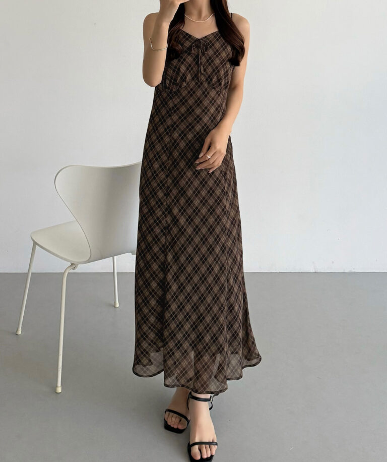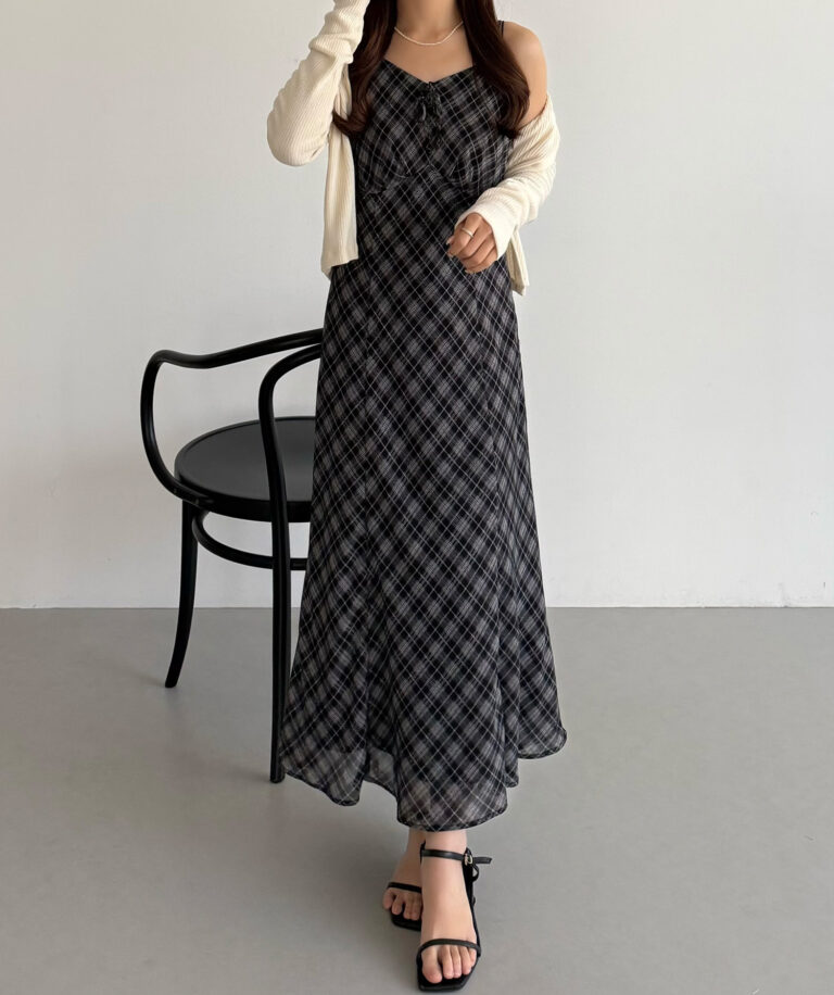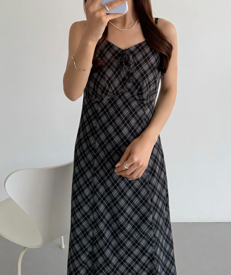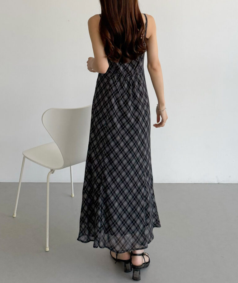 軽やかな質感のチェック生地を使用したキャミワンピース。