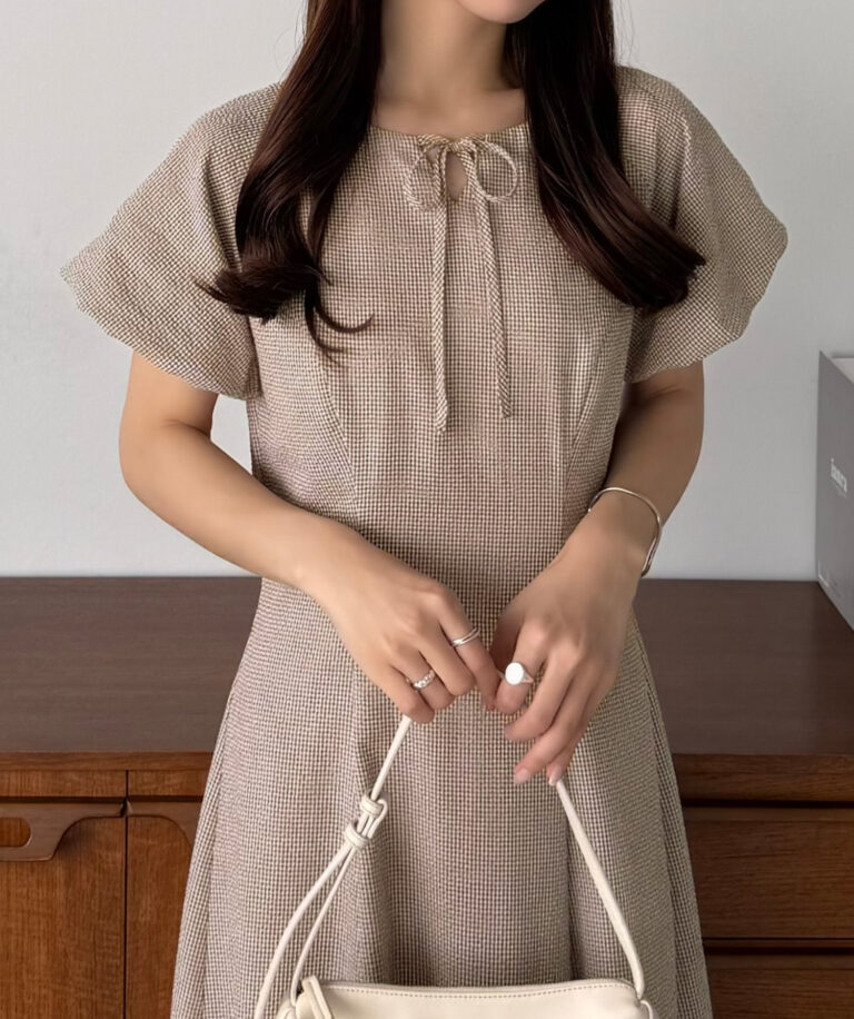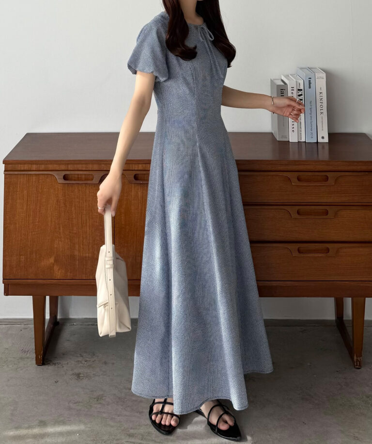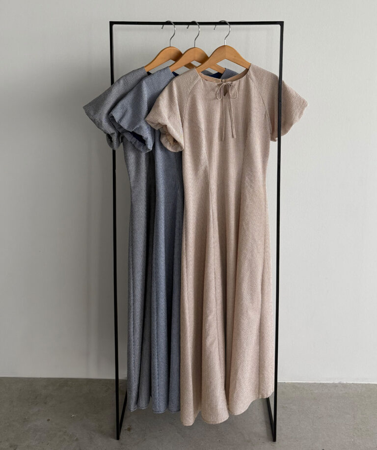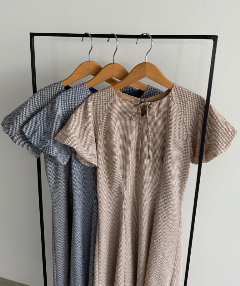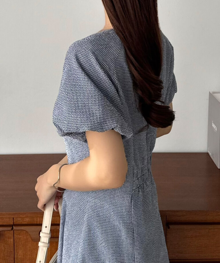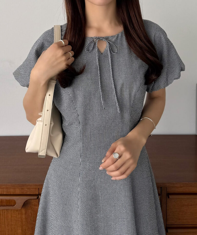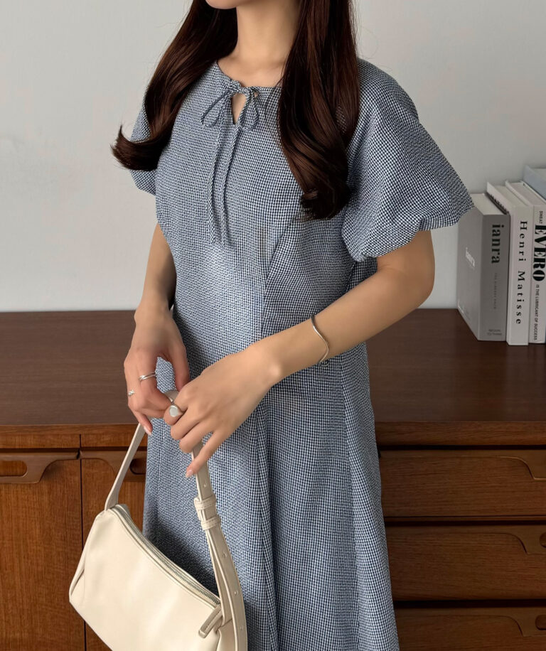夏らしさ引き立つチェックバルーンスリーブワンピース。