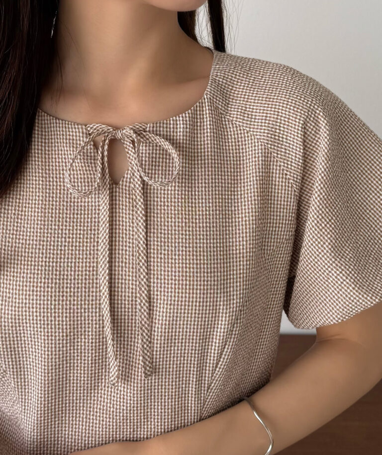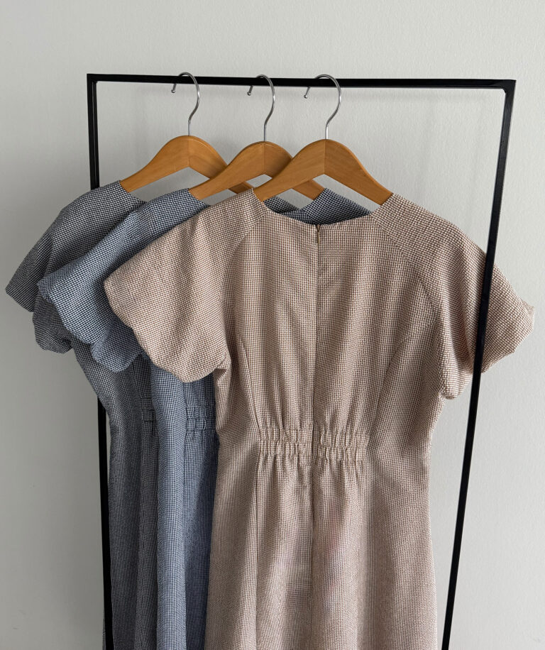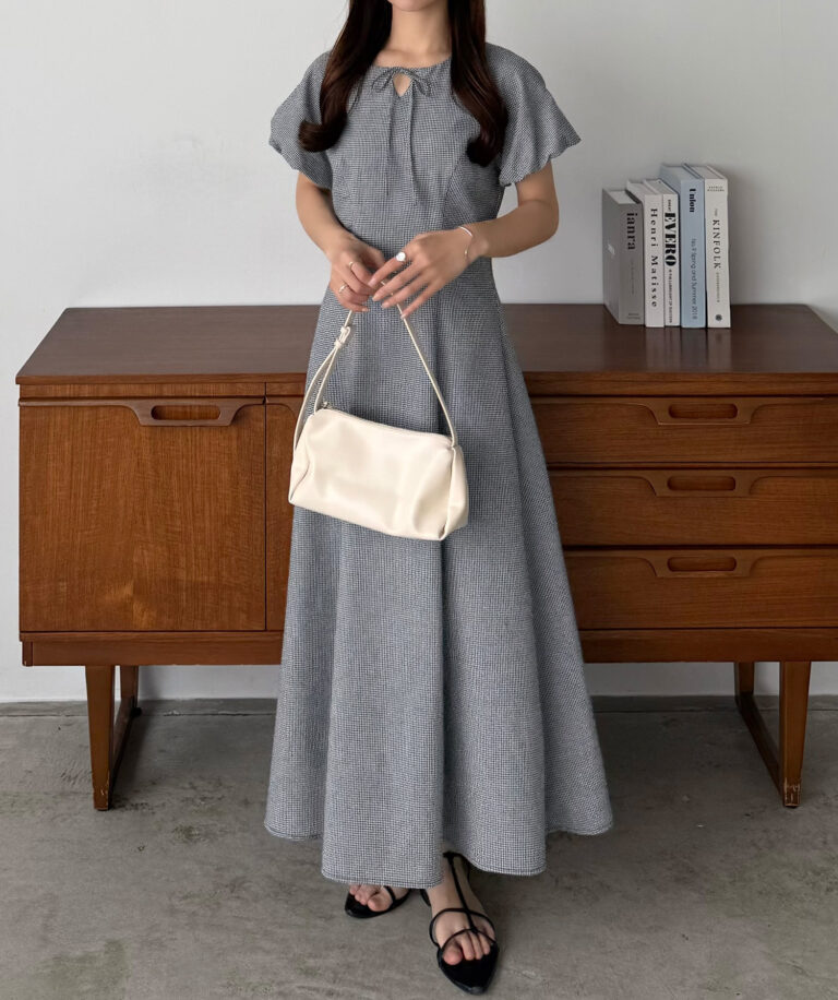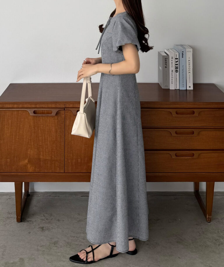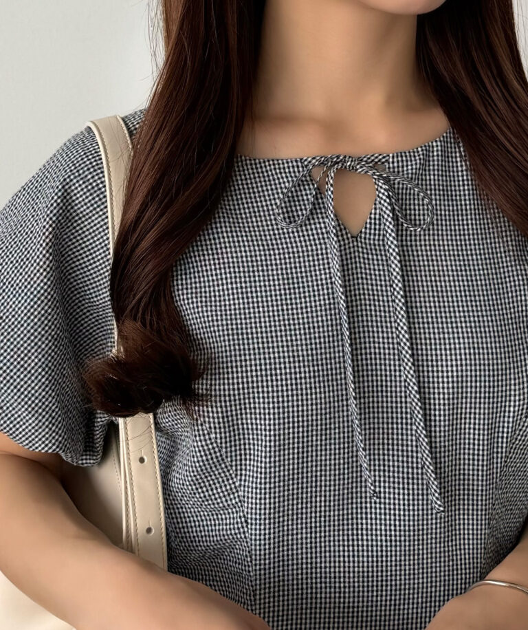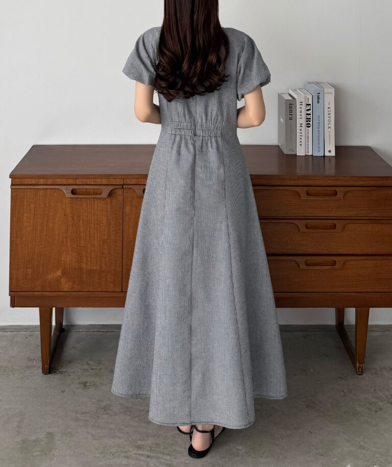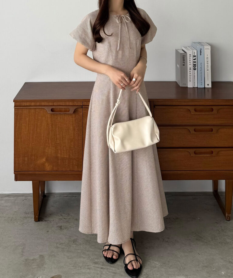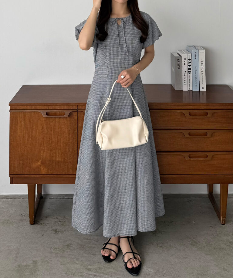 夏らしさ引き立つチェックバルーンスリーブワンピース。
