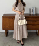 裾に向かって広がるフレアシルエットが上品で女性らしい印象にしてくれます。