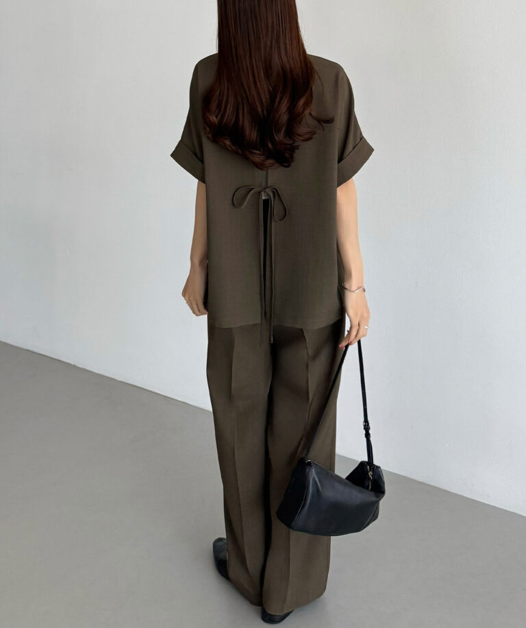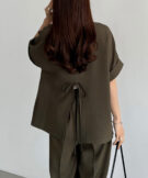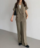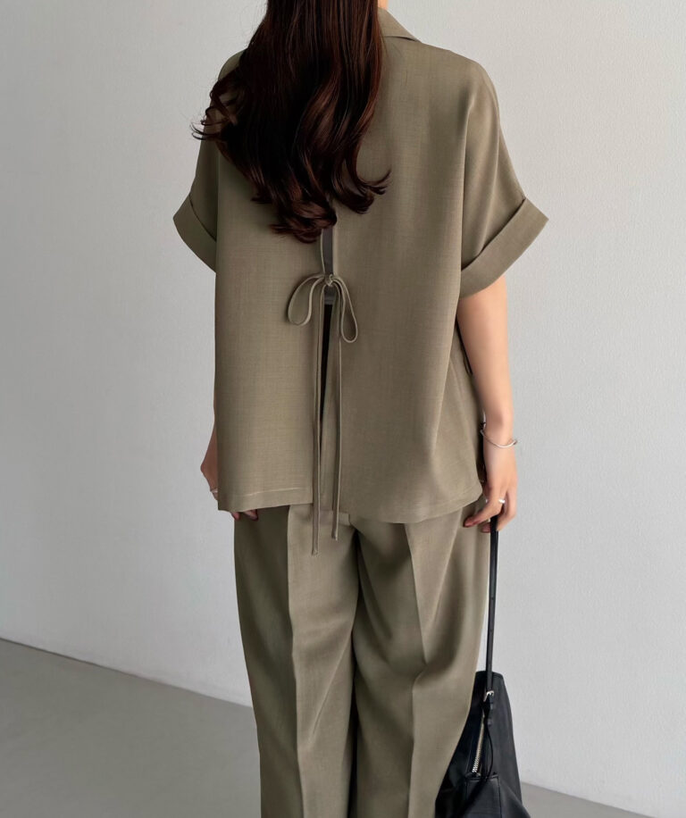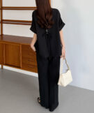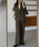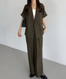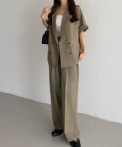 【621】リネンライク半袖ジャケット+タックスラックスパンツset