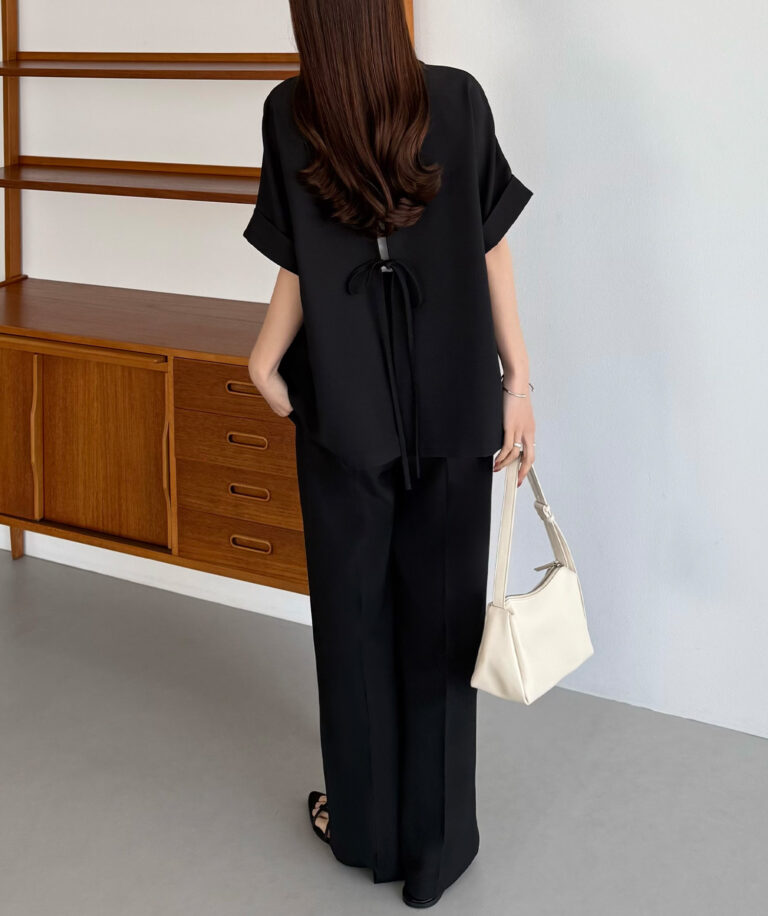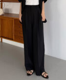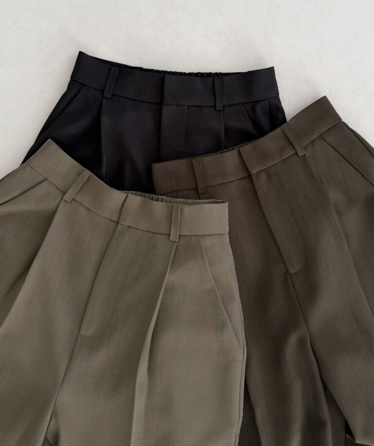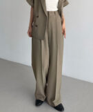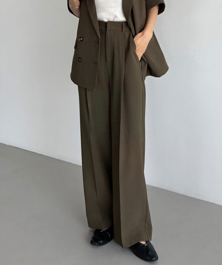 パンツはタック×センタープレス入りで縦ラインをすっきり見せが叶います。