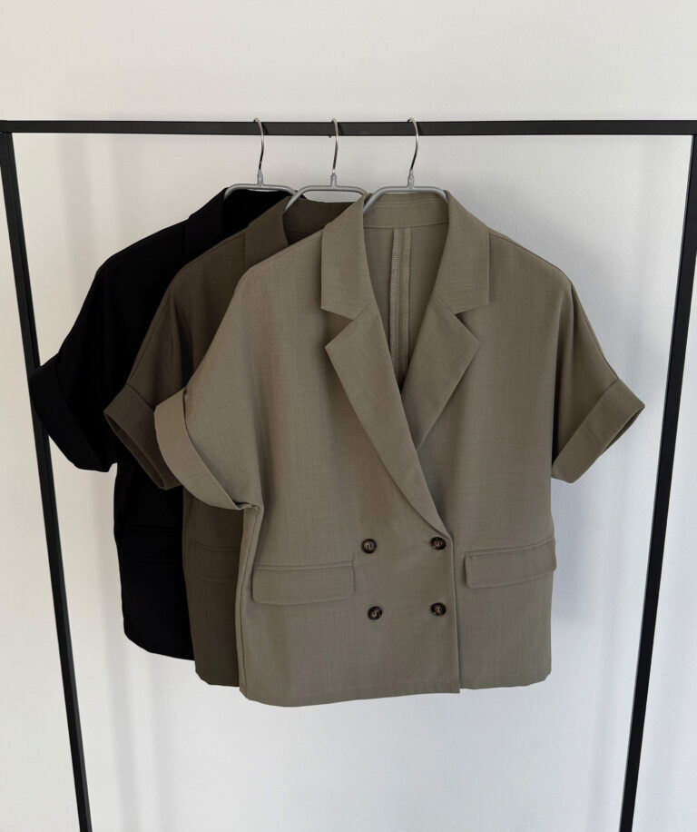 きちんと感のあるダブルブレストデザインで大人っぽい印象になり、