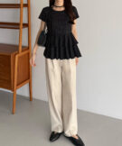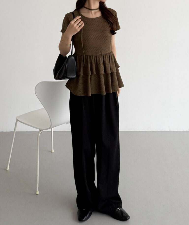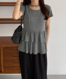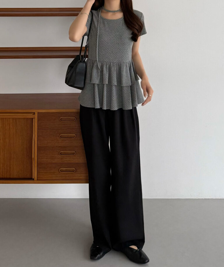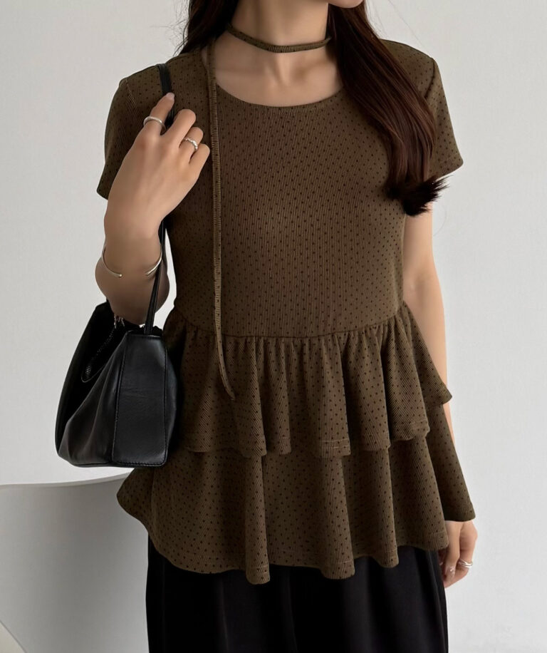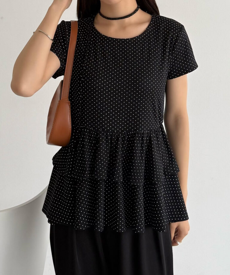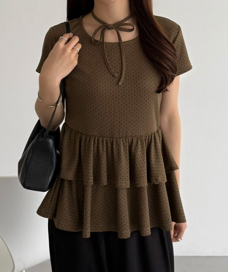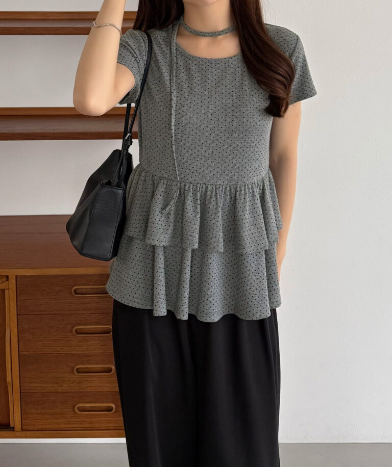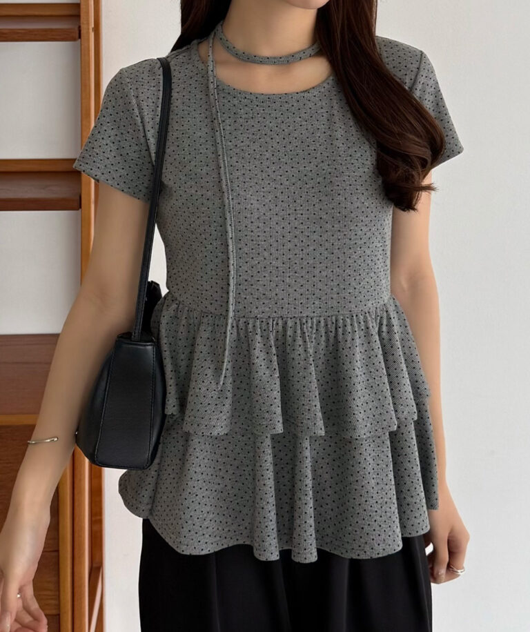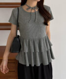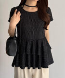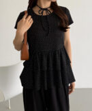 【630】リボンドットティアードトップス
